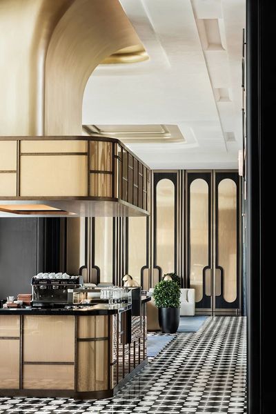 視線隨之被一抹躍動的“茶色”牽引——大堂吧的吧臺區域宛如點睛之筆,在深色與白色構成的經典基底中柔化空間,增添溫暖與貴氣。