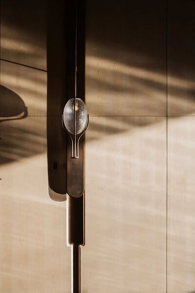 踏入酒店落客區,歸家之旅的序章已然開啟。那承載著歲月滄桑與家族記憶的“出磚入石”傳統工藝,被巧妙轉譯為現代建築的立面語言。入口垂直門體屏風,在喧囂都市中辟出一方靜謐,傳遞“歸家”的溫暖初印象。