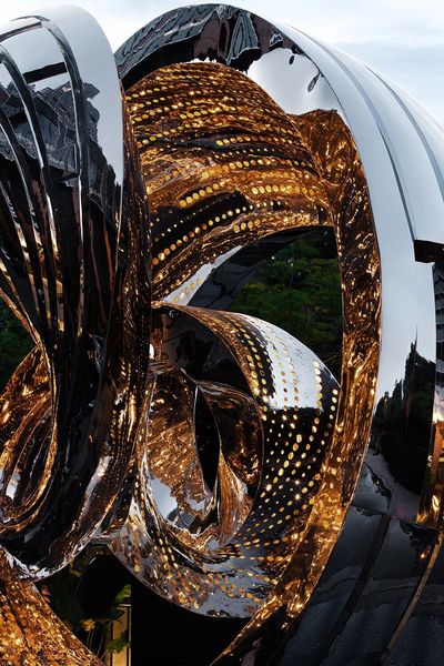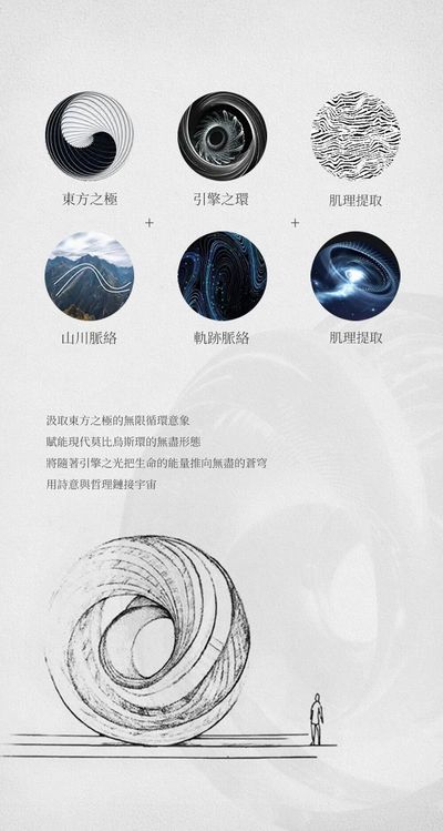 藝術家吳爽雕塑作品《引擎之光》汲取東方之極的無限循環意象,賦能現代莫比烏斯環的無盡形態。光影交織間,生命能量如蒼穹星軌奔湧不息,以雕塑的詩意鏈接宇宙脈動。這簡約而深邃的形態,既是傳統美學的現代涅槃,亦詮釋廈航41年以睿智與激情投身時間長河,迸發不竭開拓之力。
