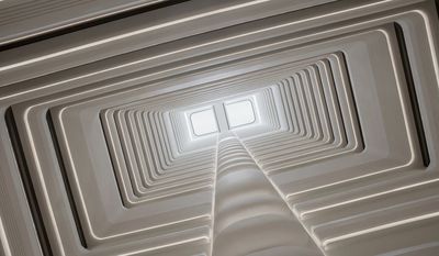 借半透隔斷製造“隔而不斷”的朦朧景深,橫向軸線串聯接待臺與電梯廳,縱向軸線借中空天井引入天光,形成雙重視覺通廊。