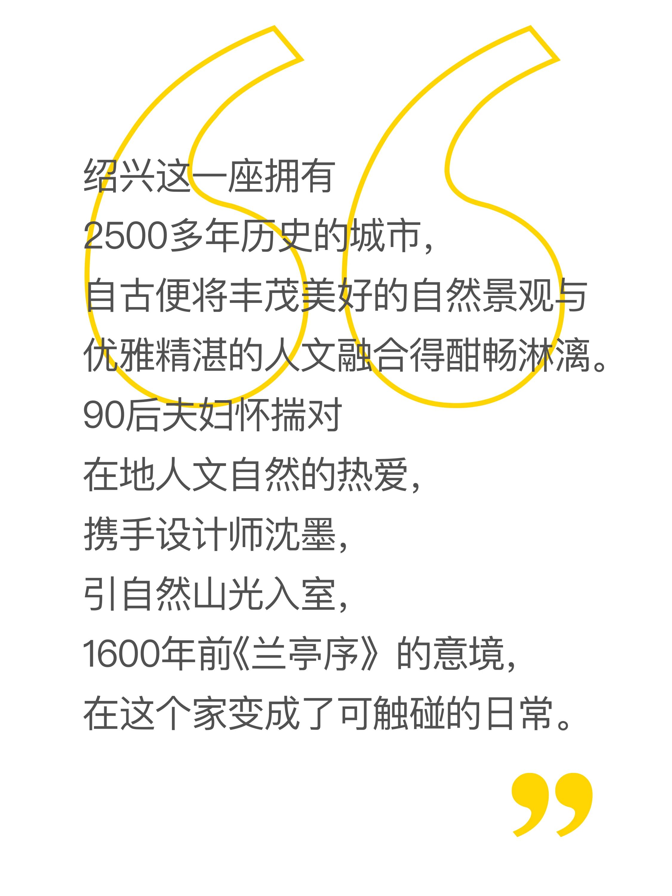 也许我们无法真正感知1600多年前王羲之因绍兴山水而执笔挥毫时的快意潇洒,但在这一个家,自然相融且诗意栖居的日常,已然成为了一首当代的《兰亭序》。