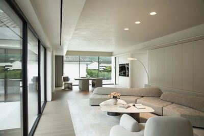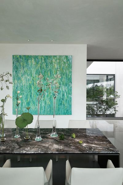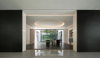 无论是设计师沈墨以往的作品,还是这座私宅,“当代极简”都是清晰可见的语言。空间中没有过多材料堆砌,新风、收纳、甚至是服务人员的动线都被干净且有效地藏于空间各处,