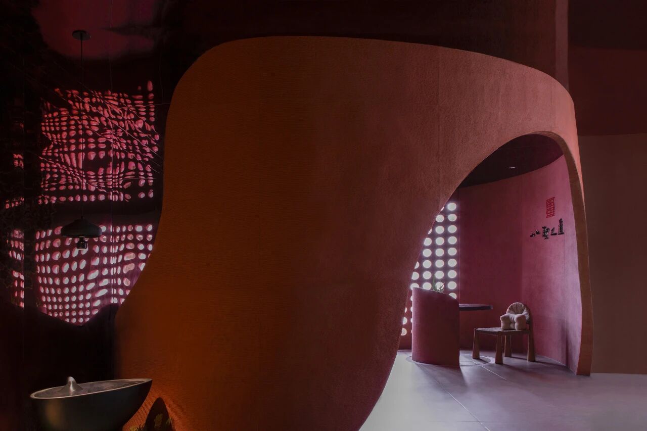 公共区域的坐垫与靠包则大量使用来自甘孜、理塘与甘南地区牧民家庭作坊的手工织布与牦牛皮。设计在合作中尽量保留其原有配色、配线与手工误差,使材料呈现更真实的触感与地方性。