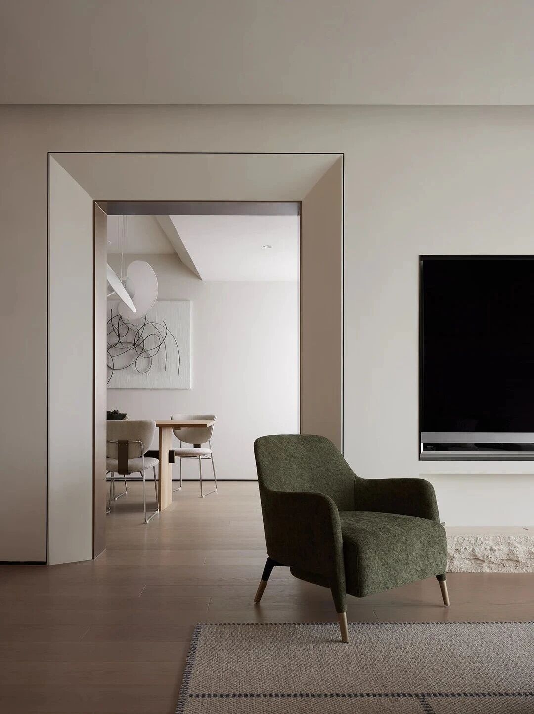 其中一个主要的关注点是,虽然每个房间都是不同的,但空间体验是一个连续的整体。这主要是通过仔细使用材料、纺织品和照明装置来实现的,因此每个房间都可以共享一个共同的特性,尽管规模有所不同。