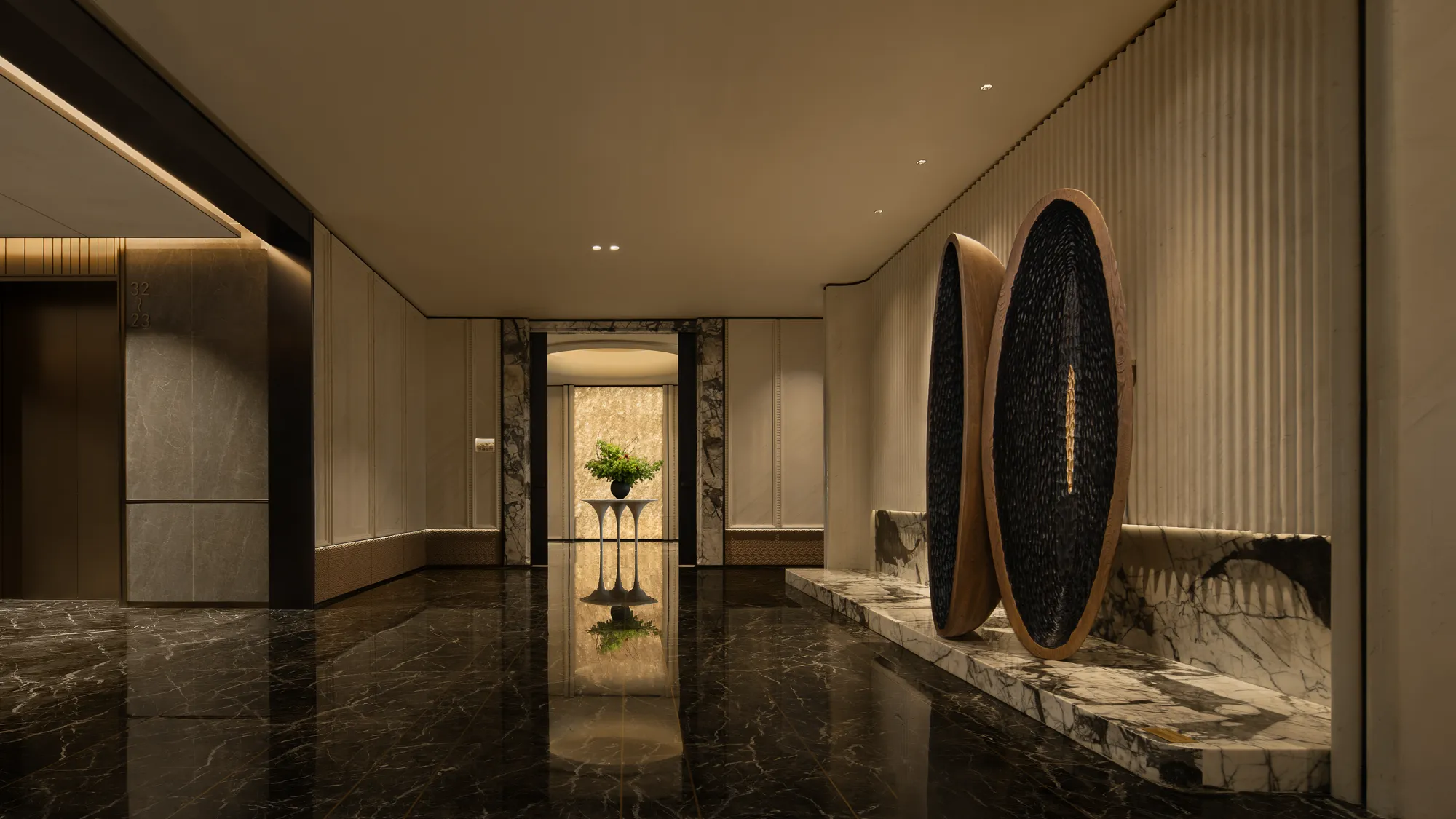 陈设、艺术和地板覆盖物中重复了一种清晰的几何图形,其目标是在自然纹理的同时创造图形打孔,使环境从无菌的、平坦的到大胆的触觉,并在画廊般的环境中形成鲜明的对比。