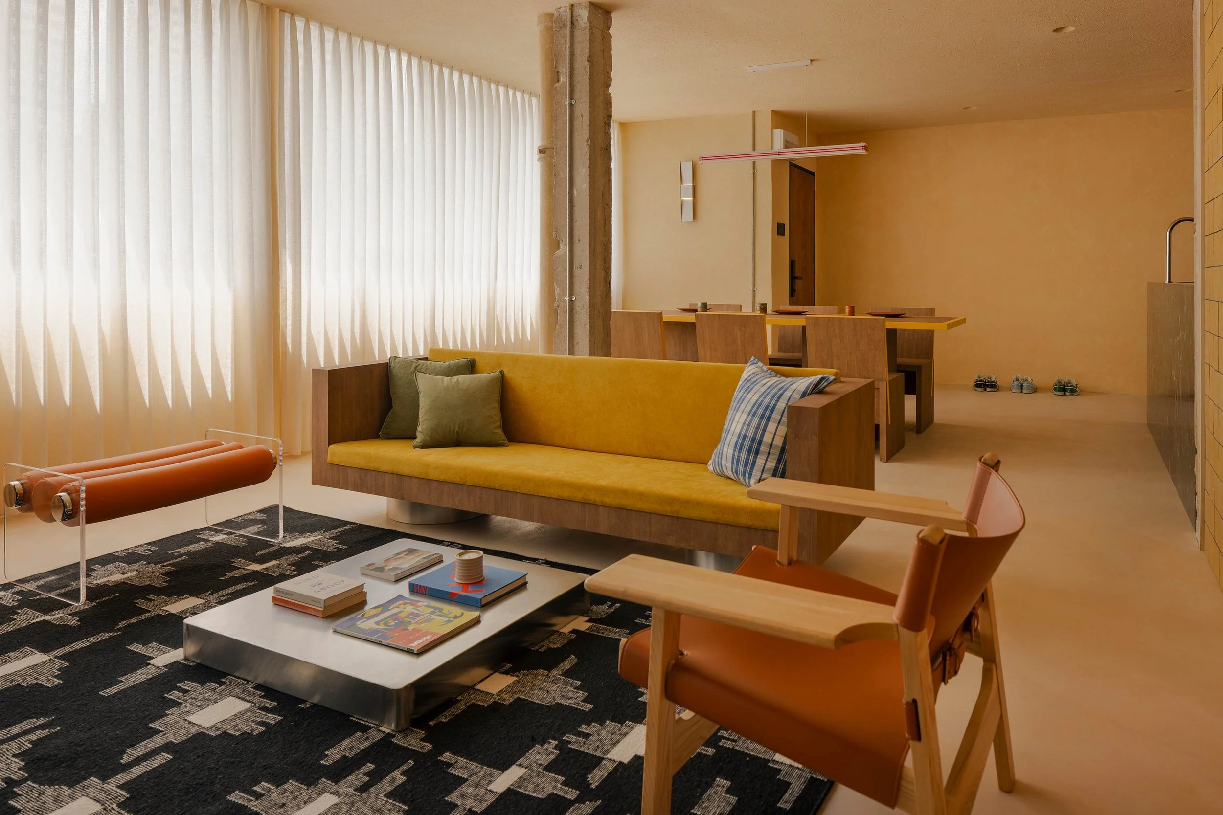 建筑在材料使用上较为克制,注重材料与空间的逻辑关系、内外的一体化以及材料语言自身的表现力。建筑的前广场、首层外墙和二层楼面均使用了红砖这一该地区历史建筑较为典型的材料,结合办公楼建筑形态构成了由南向北连续起伏的砖肌理地表。红砖的砌筑方式与所在位置、开口方式、功能要求密切相关,并在砖地表的不同区域产生凹凸、错叠、渗透等的变化。在砖盒子界面之间,室内外连桥、楼梯、门窗框以及部分室内台面等均采用钢板材料,部分室外地面还做了防滑处理。砖盒子的内部被处理为统一的浅色背景,使用了水磨石、涂料等。在砖盒子之上,二层空间内外均使用穿孔铝制格栅吊顶,照明、空调、设备等管线隐藏其中,形成完整的空间界面,与粗糙的砖表面形成对应。