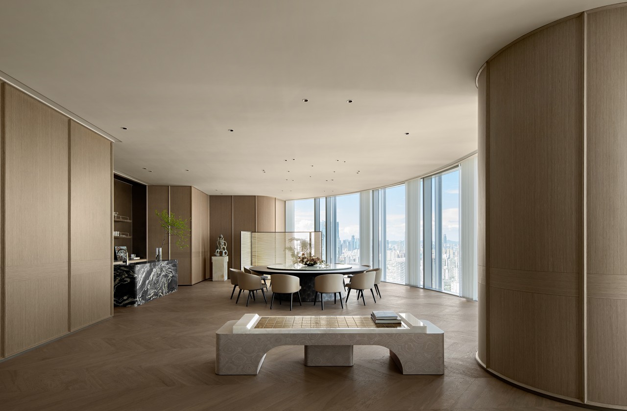 在石材构成的大气磅礴的空间格局彰显不凡,又用温暖的木色和充满人情味的功能设置来抚慰那些在日常社会中砥砺前行的业主们。