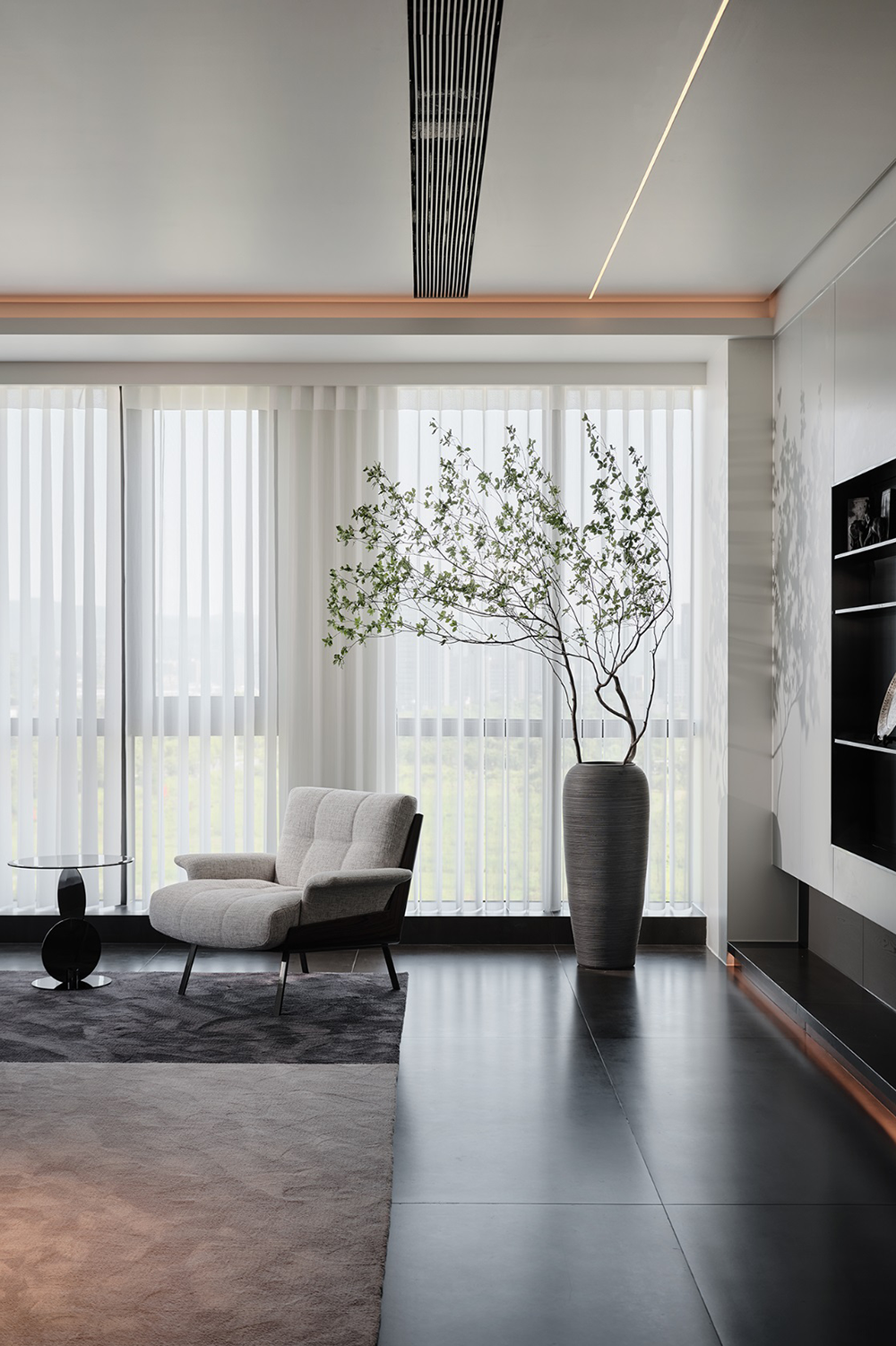 The communication area and the two office areas are common space. When the art curtain in the corridor is lowered, the three spaces are divided into separate functional areas. The unique charm of the whole design lies in its rich diversity, breaking inherent limitations in the framework while creating infinite possibilities.