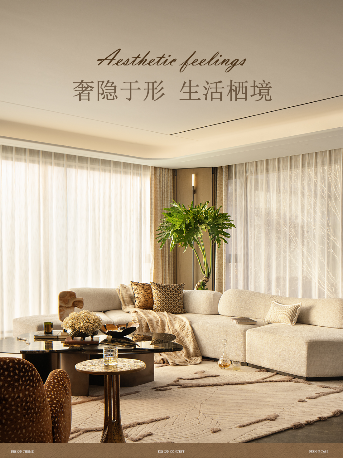 借助功能布局、动线调整与设计语言,将光线、植物、自然感的材质及柔美的曲线造型等贯穿于公共活动区、生活兴趣区及睡眠私享区,让每一位家庭成员在聚合或独处时,都能感受生活的从容优雅。