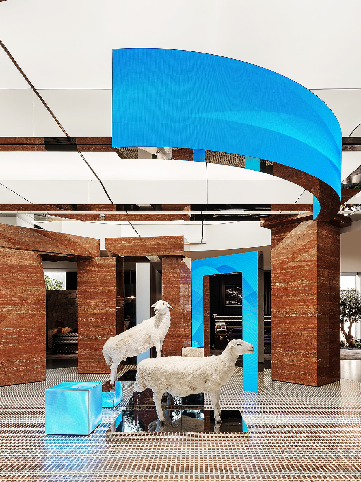 材质上,选用米色肌理漆,为空间加上一层暖色滤镜,配合其他材质,共同渲染出轻松解压的氛围。