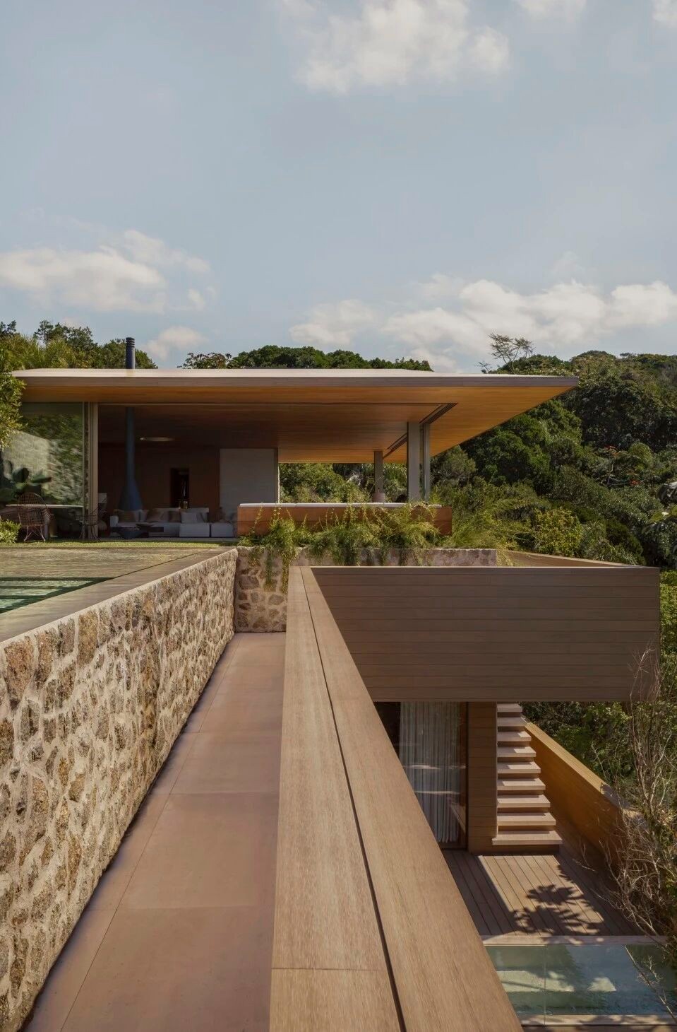 设计师从客户对宁静生活的向往中汲取灵感,创造了一个超越时间、永恒的设计空间。由于客户偏爱简约风格,设计师将焦点放在材料的质量与天然饰面的耐久性上。因此,最终选择了经久耐用的大理石、石膏、木材和金属。每个空间都经过精心设计,层次分明,色调微妙,并展示了如厨房长凳、壁炉等整体天然石材,以及弧形元素如楼梯。