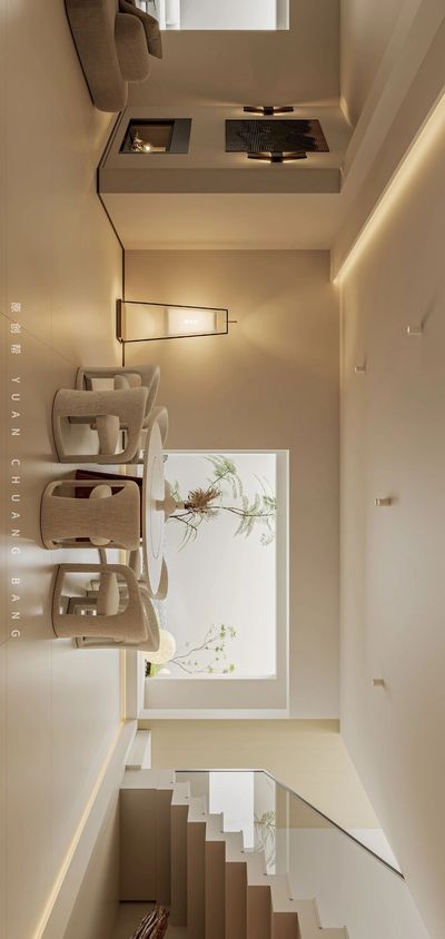 米白与原木交织出简洁基调,悬浮楼梯宛如艺术装置,巨幅窗景引入满目绿意。留白与陈设相得益彰,空间在极简中流露奢雅,通透中彰显格调,堪称现代家装的诗意范本。