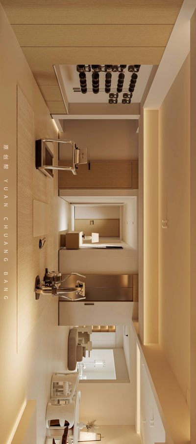 双台盆似艺术雕塑,石材肌理与灯带交织出轻奢质感。过渡廊道的线条如诗般流畅,木质与暖调的交融,让每一次穿行在实用与美学中平衡,雕琢出治愈身心的私谧秘境。