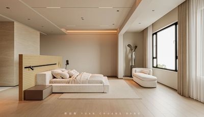 暖调木色与光影交织的主卧空间,是雅致与松弛的双重秘境。一方窗景引光入怀,床具如棉絮般轻柔舒展,艺术绿植、装置与休闲躺椅相映成趣,让每一次休憩都在美学包裹中,谱写出质感生活的诗意篇章。