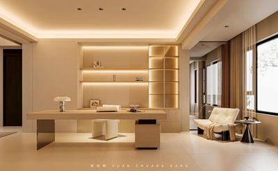 书房是思想与美学的共生地。大气书桌配艺术灯具,层架陈列雅致摆件,休闲躺椅与大幅窗景相映成趣,让阅读办公时光在质感中升华,酿成一处滋养灵感的雅致场域。