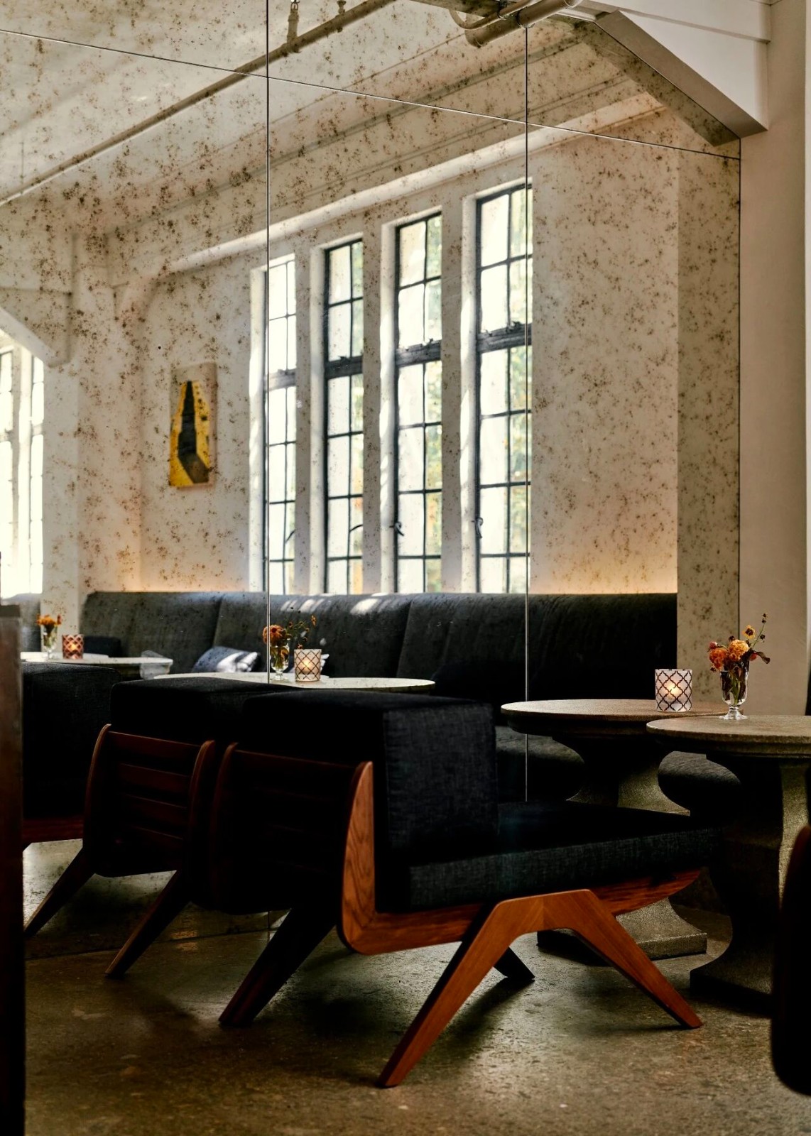 以 “材质原生性” 为设计内核,空间细节精准落地品牌 “质朴本真” 调性:角落陈设着沉淀岁月的旧木柱,其纹理里的斑驳痕迹,是时间赋予的自然质感。