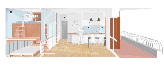 Urban Classy Home Designed by HNK in Plenty of White and Vivid Colors