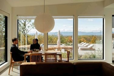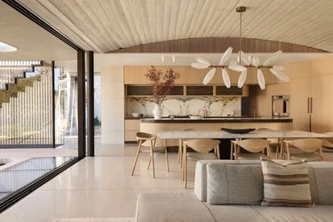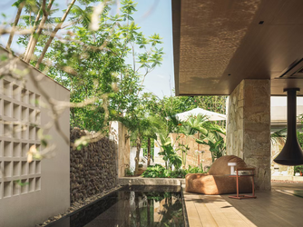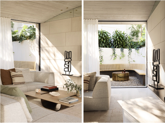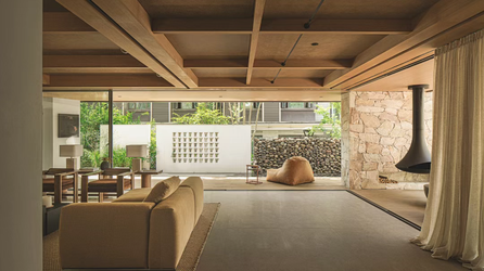 一块临路扇形地,别人用墙挡光挡视线,他用13片8米高百叶,把光“淋”进家里
