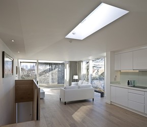 Swiss Alps home by JM Architecture is covered in dark grey tiles