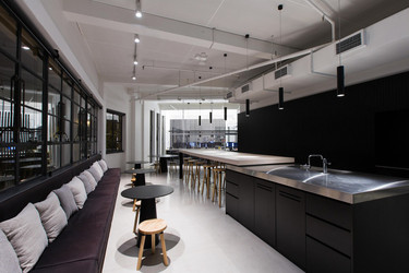 Urban Jungle meets Futuristic Grids at Orang+Utan Vegetarian Bar in Kiev, Ukraine