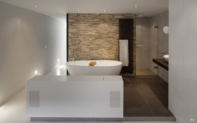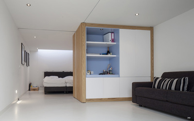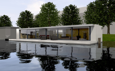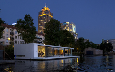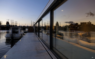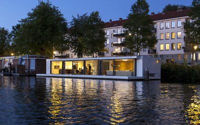 Watervilla Weesperzijde on the river Amstel in Amsterdam