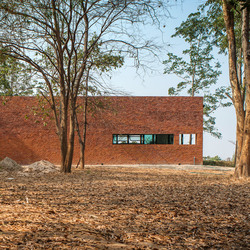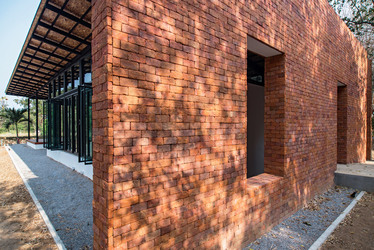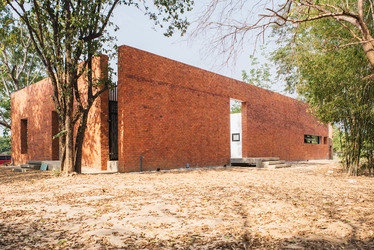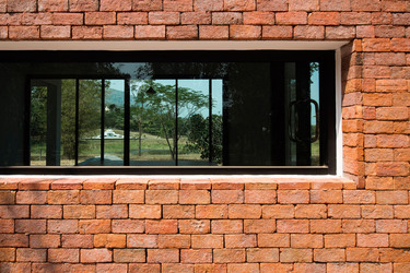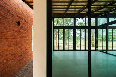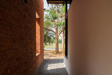 Thai house made from layers of brick, concrete and glass