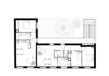 Conversion of an Old School Building to a New Apartment for a Young Family