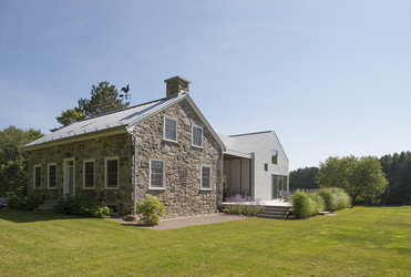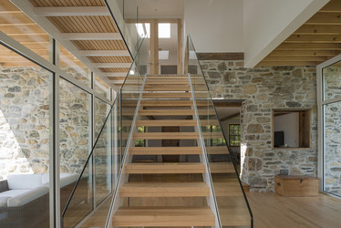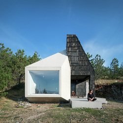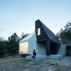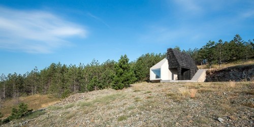 Mountain Home Built by Combining and Connecting Two Monolithic Volumes