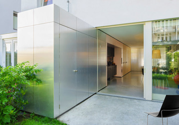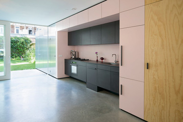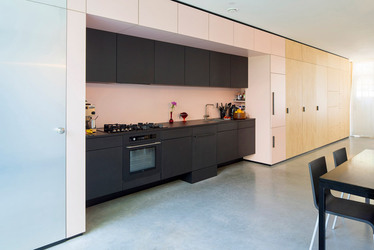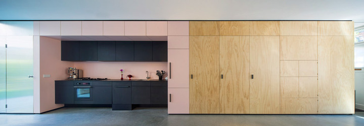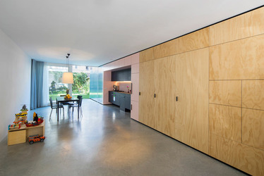 Shift's barcode-like wall cabinet transforms Amsterdam house