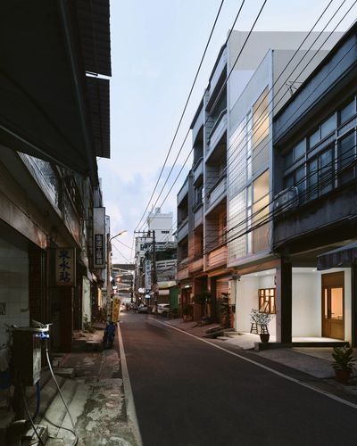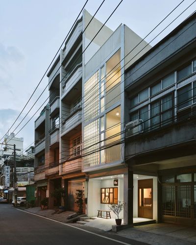 透天厝作为台湾典型建筑类型之一,临街面宽较窄,内部纵深长的建筑平面,往往限制了布局上的创新。在台湾老区中联排的透天厝形成街道独特的风景,不同的外墙材料如洗石子、花砖或马赛克,拼贴出年代的设计感。