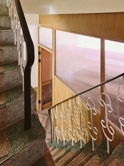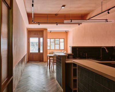 一楼主要为前台接待与餐厅,保留了原磨石子墙和新的暖色内墙,楼梯间同样保留原铁栏杆,磨石子墙和台阶地面。二、三楼每层设计了两个客房,一间面向马路另一间朝后院。