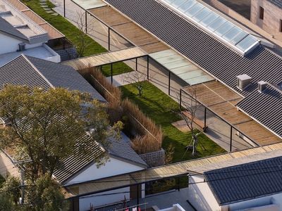 原本厂区内的建筑体量之间的联系,尤其是户外公共空间的组织是缺乏梳理的,于是设计团队用一条游廊将原有的几间屋子做了充分而细致的连接。