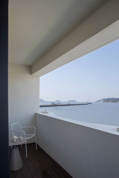 整体以米白色为主色调,保留并利用当地特有的石墙、石垦等原始材料,将在地文化融入设计语言中,建筑与岛屿关系于自然中表达真实。