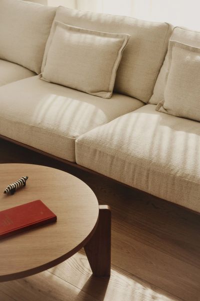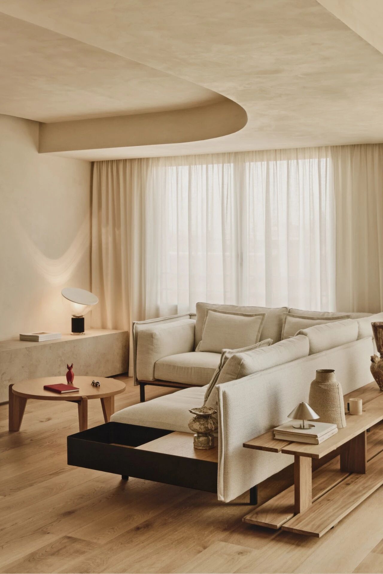 法国橡木地板贯穿全屋,形成材料语言上的连贯性。其温润的色调与天然纹理为空间注入舒适与亲和,同时在不同功能区之间建立起顺畅的视觉流动。统一的地面材质使空间关系更具可读性,而橡木自身的自然变化又构成细微的节奏,与日光的变化形成互动,展现出材料在时间流逝中激活空间的力量。