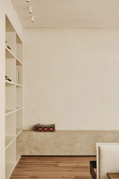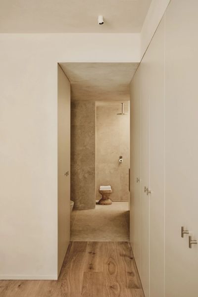 住宅内部采用石灰灰泥覆面的墙壁与天花板,赋予空间以手工艺般的质感与深度。在中性色调的基底之上,家具与自然光成为塑造空间个性的关键要素。这一设计选择回应了欧洲建筑师对传统建造技艺日益增长的兴趣——这些技艺不仅具备环保优势,也拥有工业化饰面所缺乏的触感温度。手工表面的肌理呼应了瓦伦西亚特有的地中海光照,柔化强烈对比的同时,保持视觉的纯净与清晰。