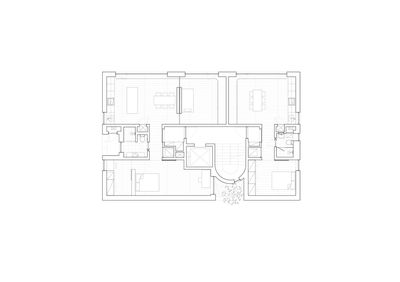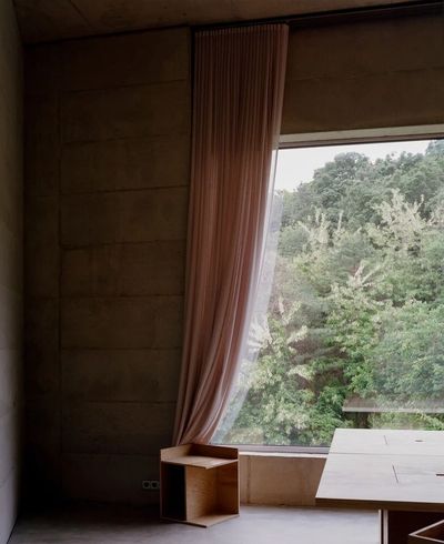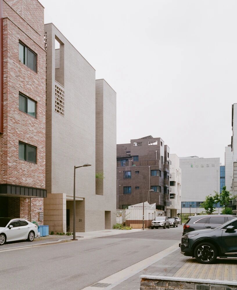 这所房子重新思考了在高密度城市环境中的建筑如何能够提供宁静、专注以及与自然的连接,而无需求助于与世隔绝或造成视觉混乱。它挑战了以更多房间、更高密度或装饰性饰面来定义价值的观念。相反,它优先考虑的是实际的生活质量和感官上的清晰度。其静默的创新之处在于每一平方米都被有意地利用。一个半圆形的楼梯平台减少了未被使用的空间,它作为一个朝向街道的视觉标志物,并开辟了一个北向开口,既框景了建筑自身的几何形态,又柔和地引入了光线且不牺牲私密性。南向的方位指导了整个空间的布局。生活区被布置在最能充分利用阳光和框景茂密山坡的位置,而私人卧室则朝北布置,免受噪音和强光的干扰