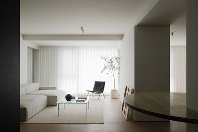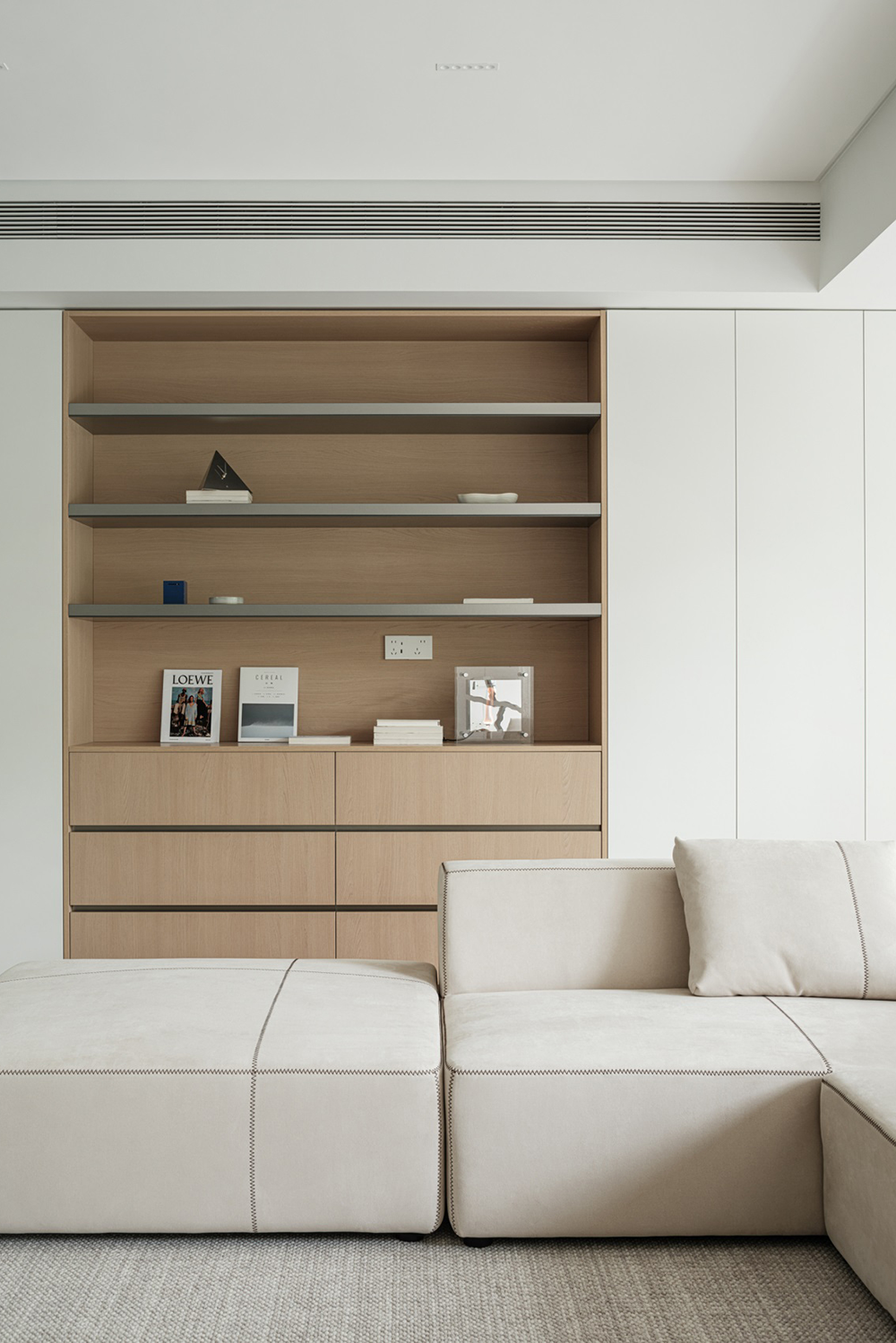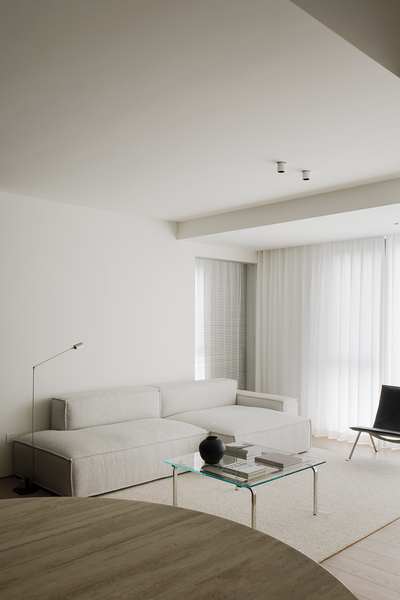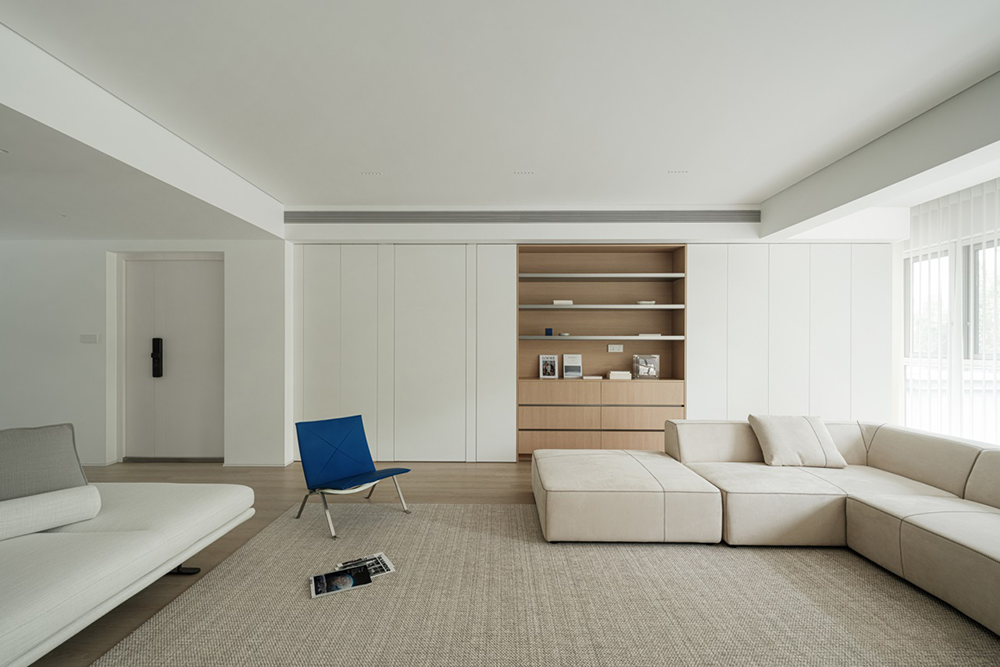 整体搭配以大量留白营造出宁静通透的氛围:家具造型简洁,空间布局开阔,尽显 “少即是多” 的设计巧思。