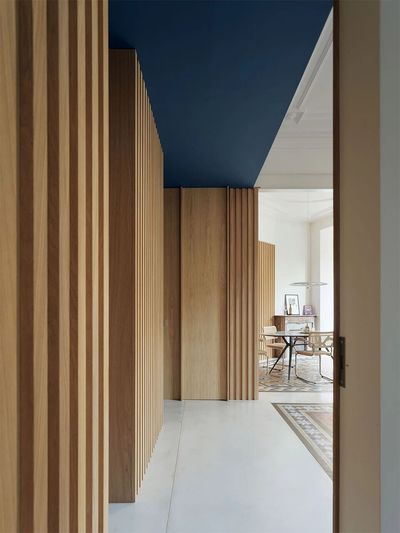 马赛克地砖,为众多设计决策提供了指引。我们通过引入新的色彩与形态,在过去与当下之间建立对话。新的天花板拓扑统一了不同高度,顺应窗户的同时也组织了新元素。几何形态与鲜明色彩的互动旨在强化既有的空间品质。项目同时也修复了所有原始的门与窗。