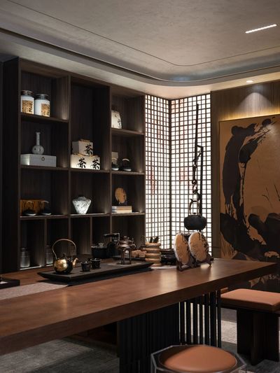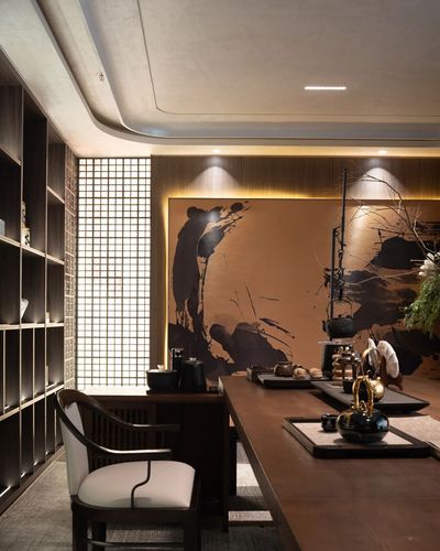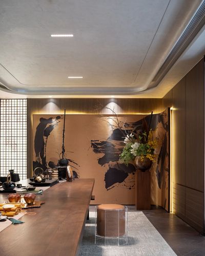 茶室空间静谧、禅意,与室外景观融合,和好友来此禅茶一味,