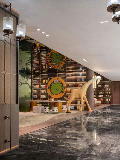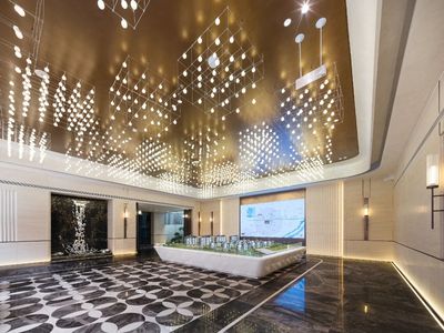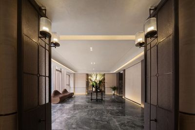 回家大堂设计以通透的空间为基底,整体融合精致雅奢与艺术美学。