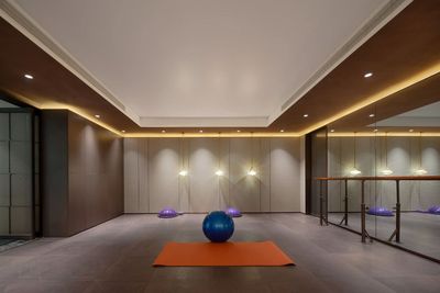 简约的瑜伽室,静谧而优雅,大面积的镜面延展空间的同时方便业主的运动功能,为业主提供休闲、舒适的健康运动空间。