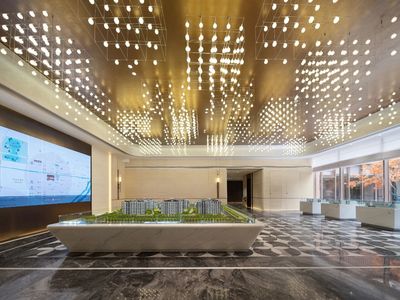 沙盘区顶面采用光立方的概念,将星光的元素引入室内,与幕墙之外的阳光、景观相互辉映。