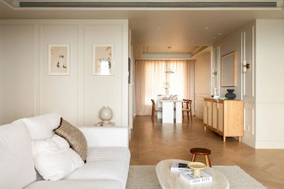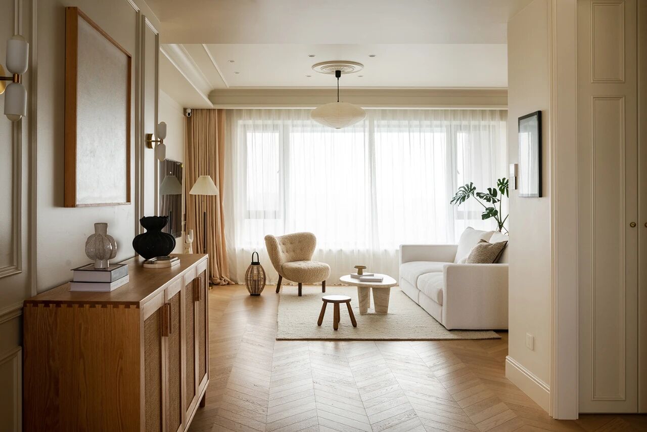 项目为北京150平米三居室住宅,基于精装修基底进行风格焕新与功能升级,以法式奶油风为核心设计语言。
