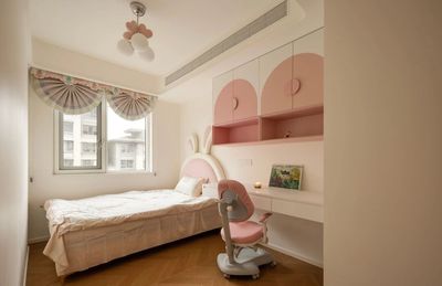 儿童房以单人床为核心,搭配学习桌与陈列柜,兼具休憩与学习功能。