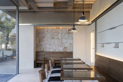 The overall materials of the NOWO space use aggregate rammed earth and crushed stone as the primary materials, presented through the traditional techniques of spraying, tamping, and laying. K1Y uses materials with traces of handcraft as spatial decoration, balancing the coldness and order of the metal construction. The interior lighting reflects the riverside flower fields through various handcrafted forms and restricted construction methods. The freely blooming light within the constrained areas represents our most vibrant expression as individuals.