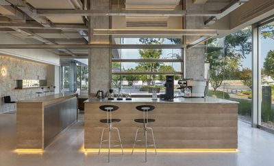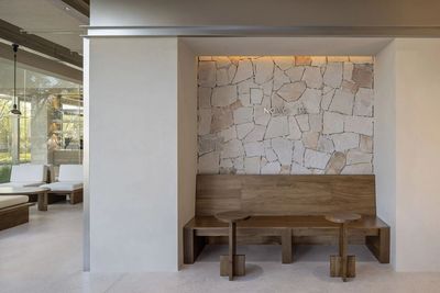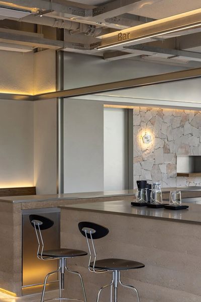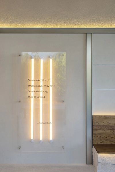 NOWO空间整体材料以骨料夯土碎石作为空间主材,以喷涂夯砌铺贴的传统工艺方式来呈现。K1Y通过具有手工痕迹的材料作为空间装饰,平衡金属构建中的冰冷与秩序。室内空间的灯具以不同的手工形式加限制搭建的方式呼应河岸的花海。在限制规划的区域内随意绽放的光彩是我们作为个体最具活力的展现。