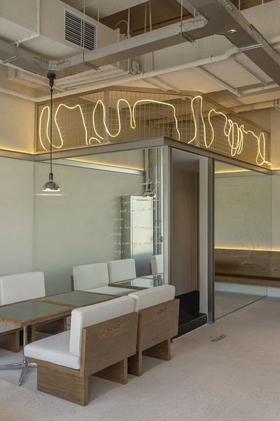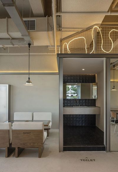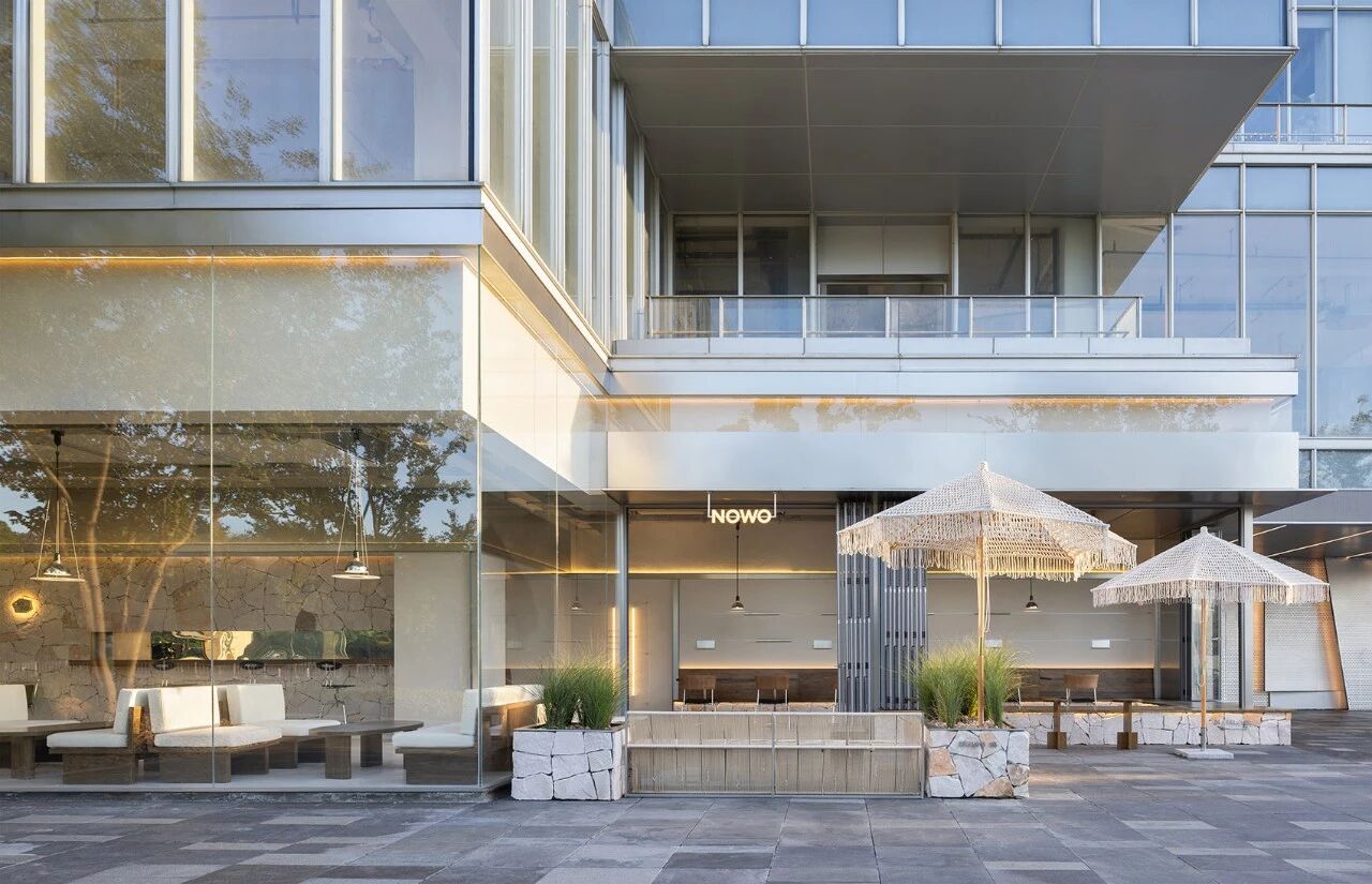 The project is located at the corner of the commercial complex’s ground-floor shops and features a three-segmented transitional space. By gradually opening up the area, the overall space is reshaped to create an ‘open social space’ unique to NOWO. The spatial order is established through the extension of bridge structures and the construction of metal frameworks between functional zones, creating a ‘urban sanctuary’ belonging to this area.