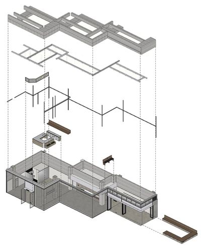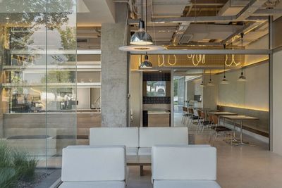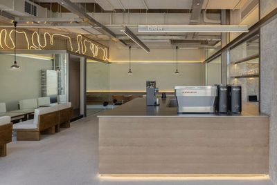 项目位于商业综合体的底商转角处,拥有三段式的转折空间。通过逐步打开的方式将整体区域重塑,营造一处属于NOWO的“开放型社交空间”。各功能区之间通过桥架的延伸与金属框架的搭建生成空间秩序。构建属于这片区域的“城市庇护所”。
