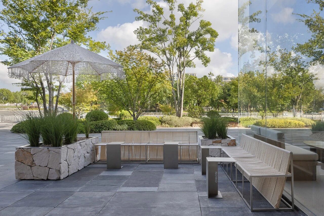 最东侧的开放区域通过手工编织等工艺方式,搭建专属于NOWO的外摆空间。项目整体坐南朝北大面积的开放空间不需要过多担心日照与避雨等功能问题。因此外摆区更多以自然营造与场景搭建来形成空间上的围合。