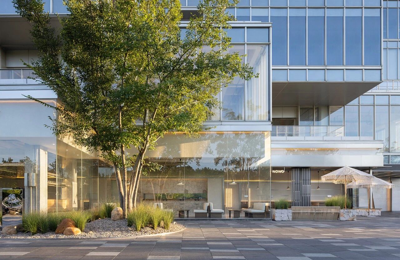 NOWO CAFE位于宁波市小江湖路与日丽西路的交叉口。西北角遥望奉化江湾,河道沿岸会根据花期更替不同色彩的花海;正北方是浙江省最大的城市中央湿地公园/鄞州公园;东侧紧邻南部商务区。周边自然景观富饶,城市建设风格现代。设计概念就此产生,K1Y希望通过重塑与活力构建独一份的‘城市庇护所’打造属于这片区域的‘开放型社交空间’。